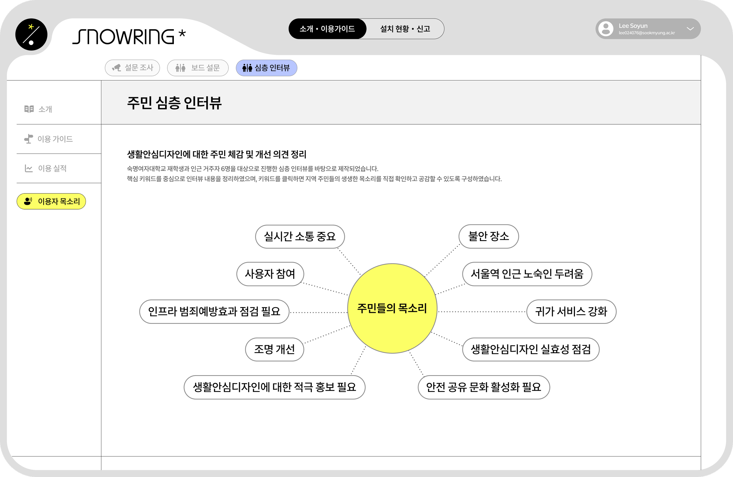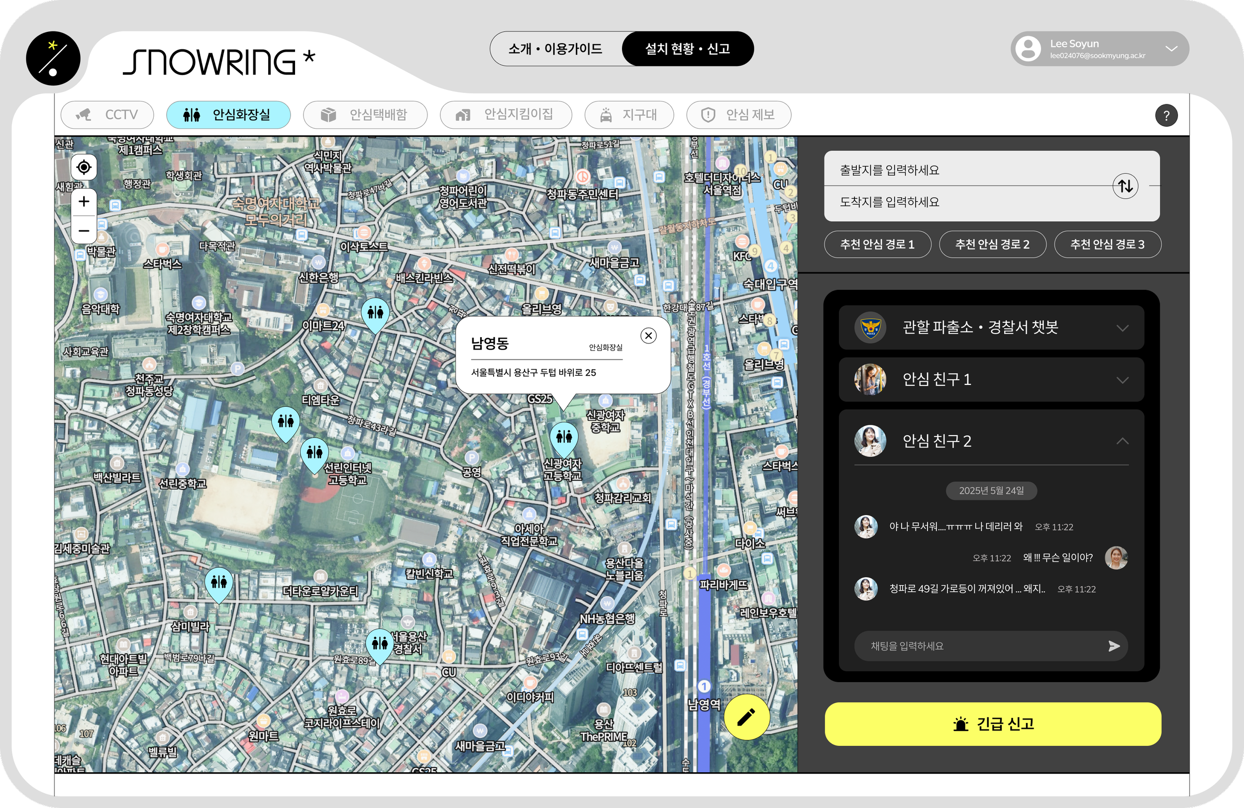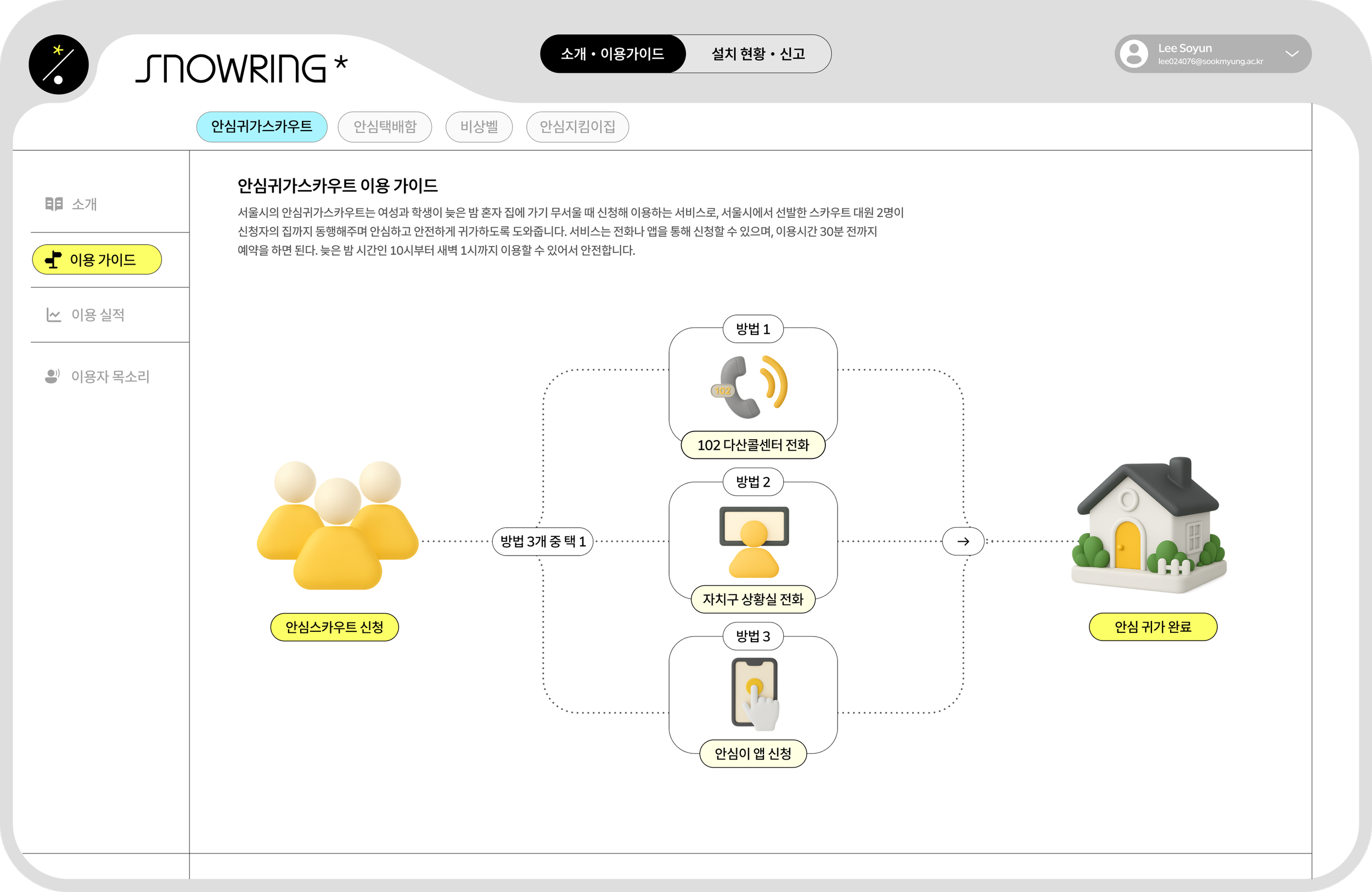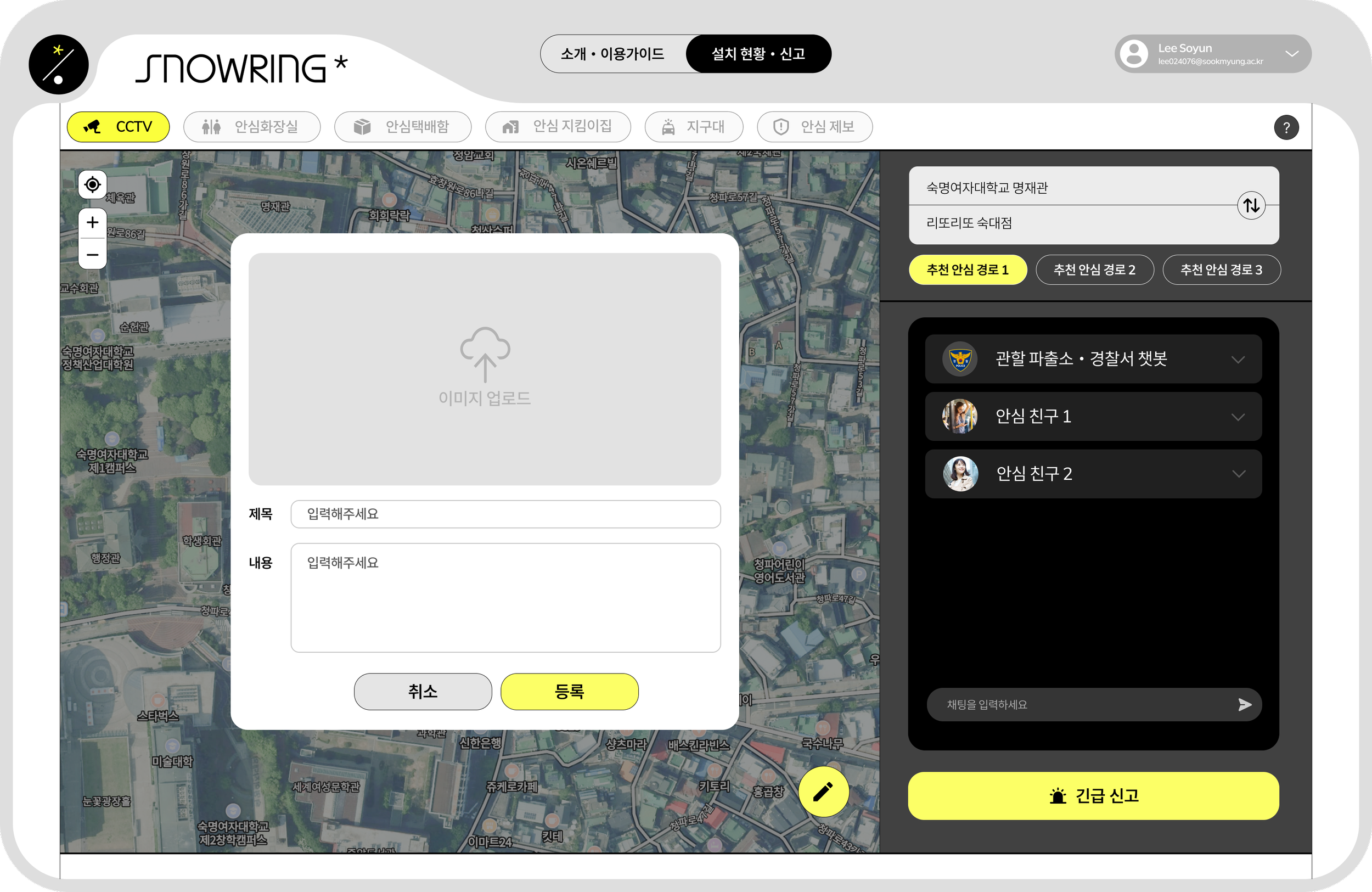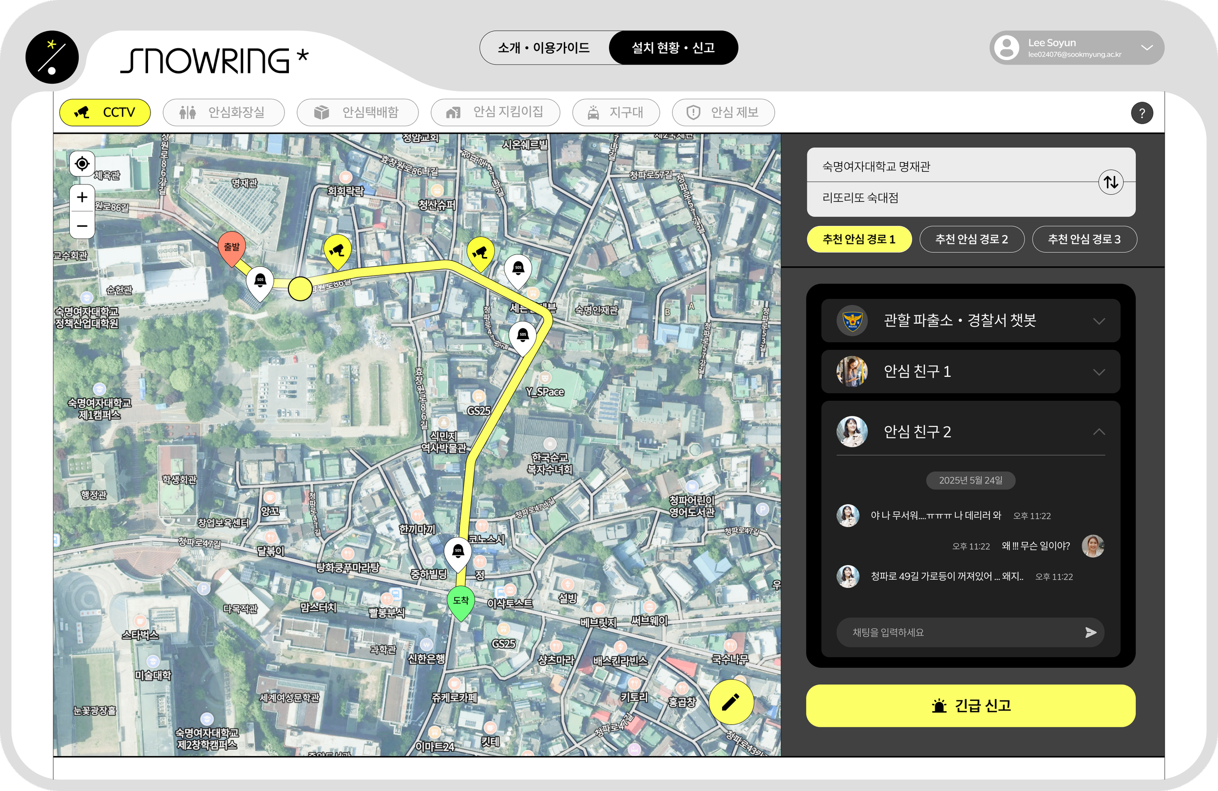 프로젝트 제목: 스노우링 : 숙명여대 반경 1km 안전을 위한 생활안심디자인